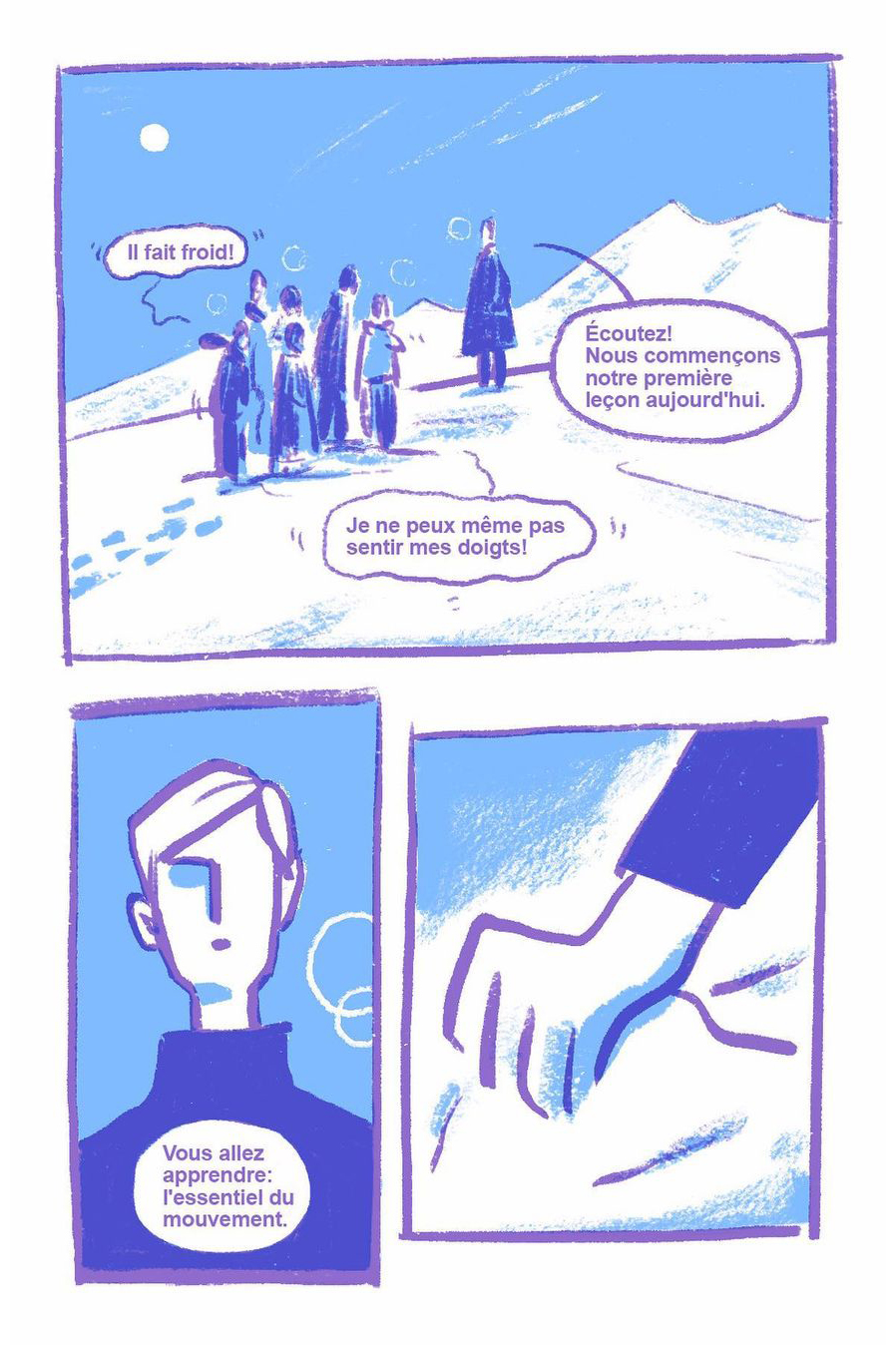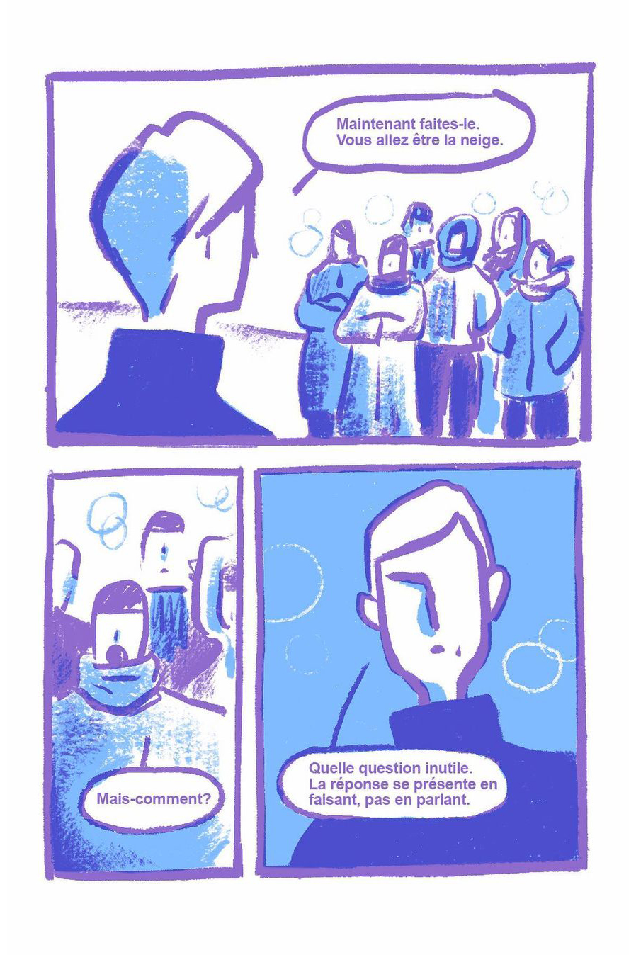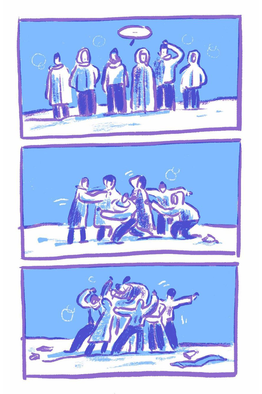 8 page comic created from pulling out random words in a grab bag: icy, snowman, and profound.