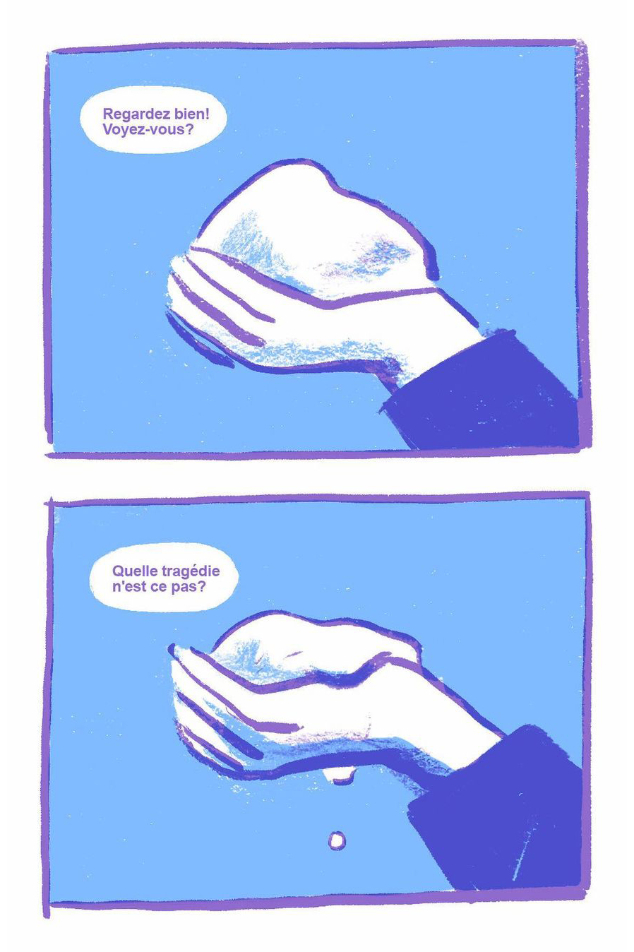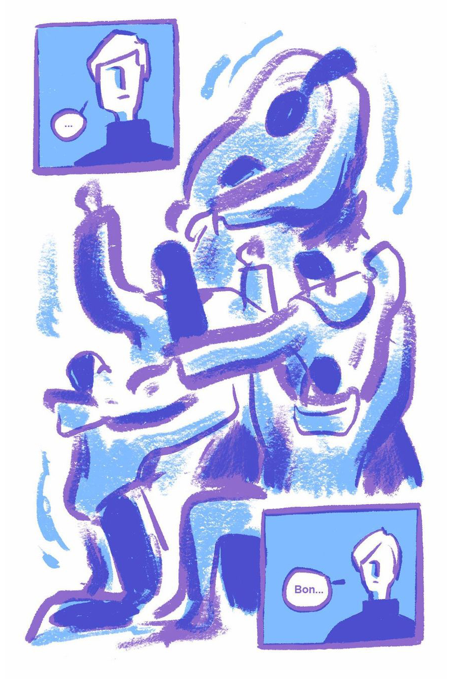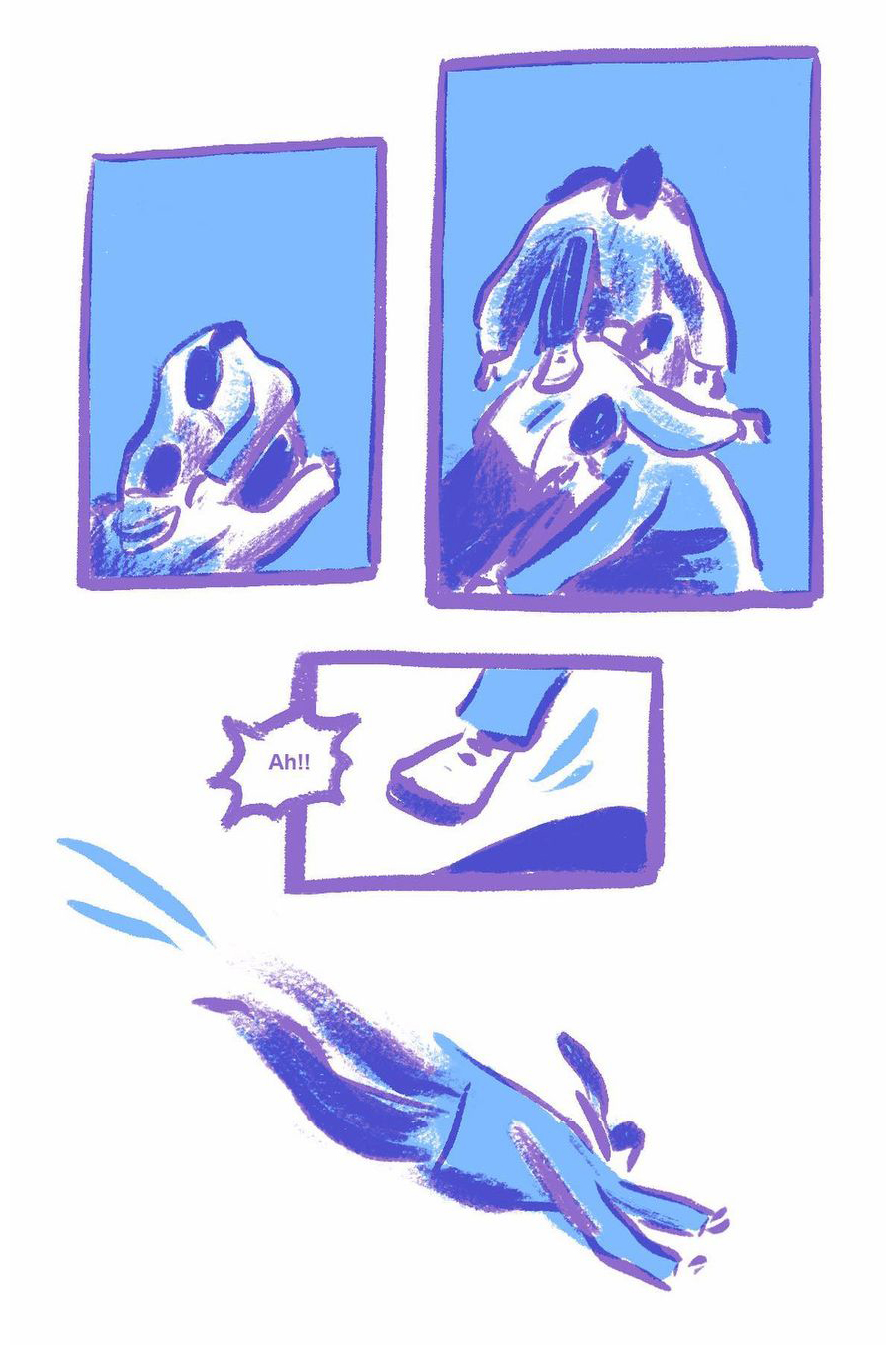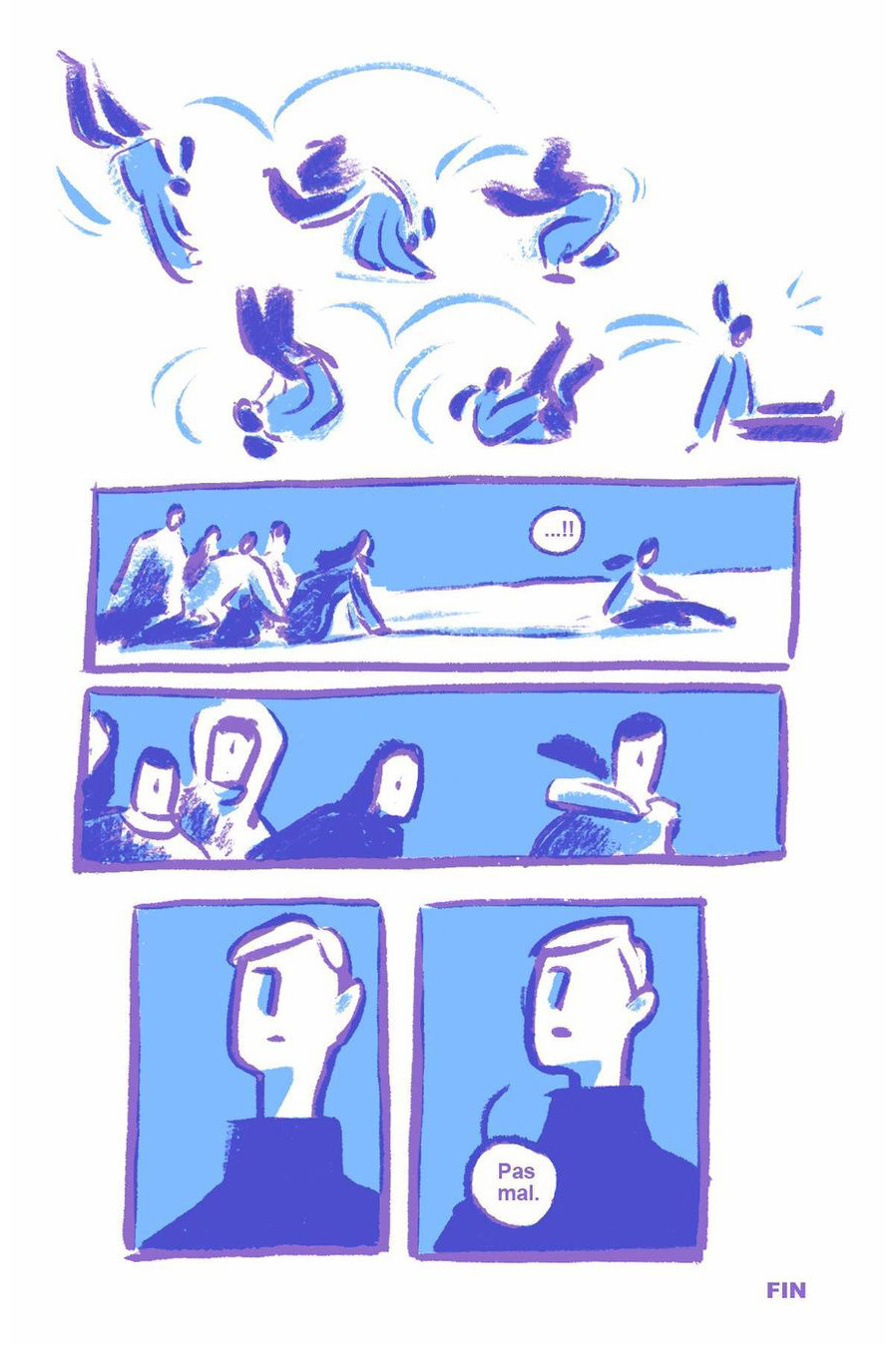8 page comic created from pulling out random words in a grab bag: icy, snowman, and profound.
