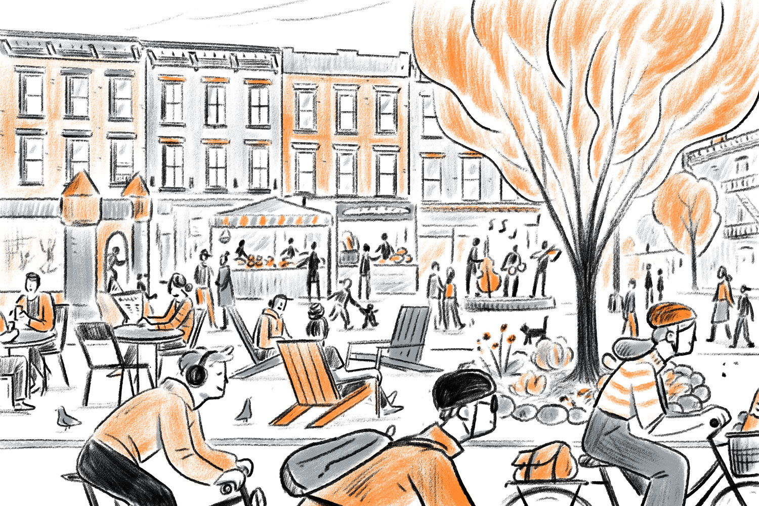 Assignment for The New York Times to imagine how three New York streets would be like if there were no cars. Read the full article here.